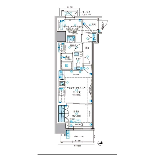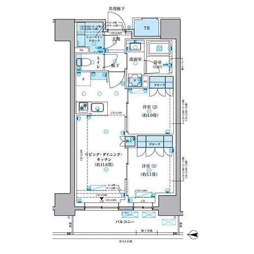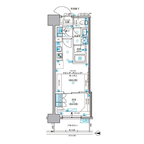 1LDK(41戸)、2LDK(34戸)、3LDK(2戸)